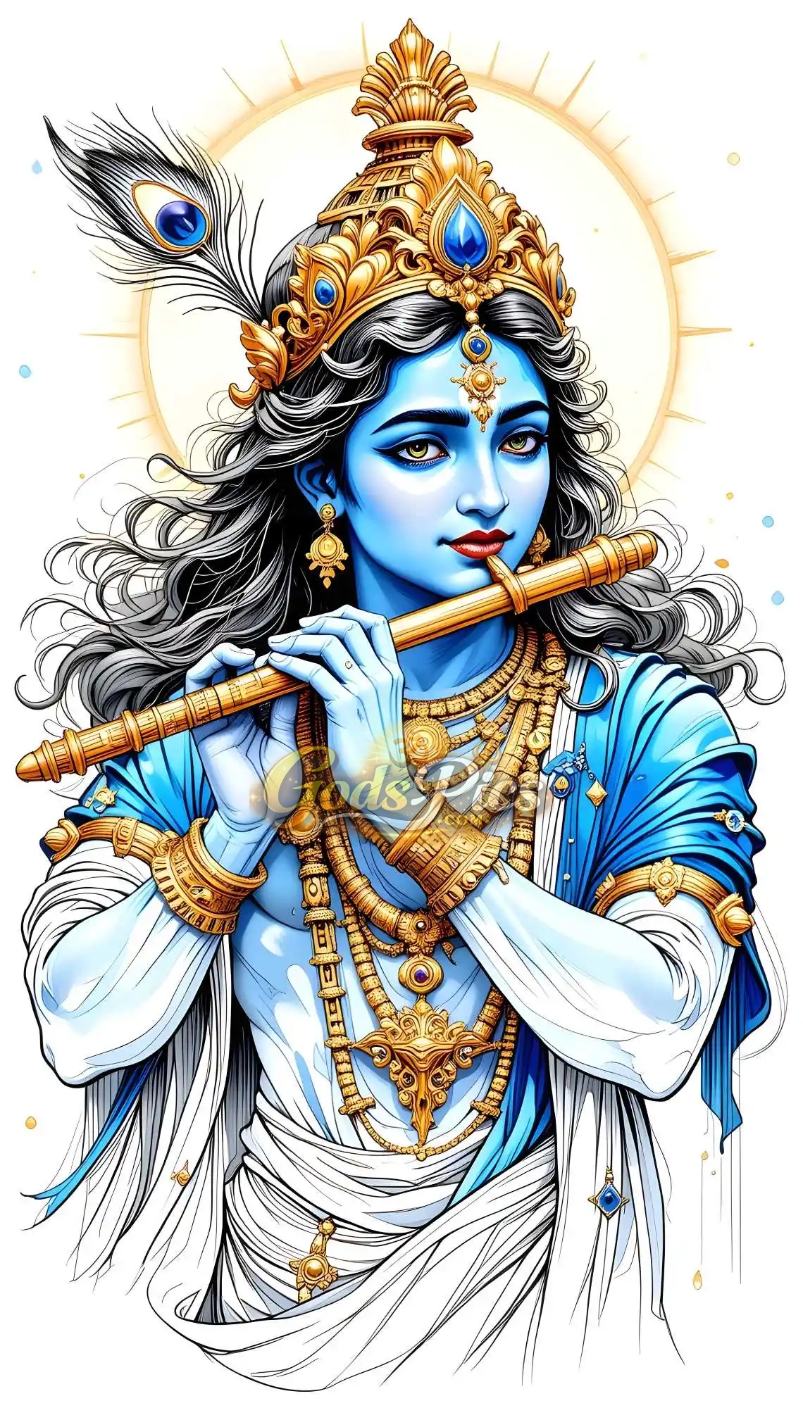 • Subject: Divine Lord Krishna Playing Flute Digital Art By Gods Pics