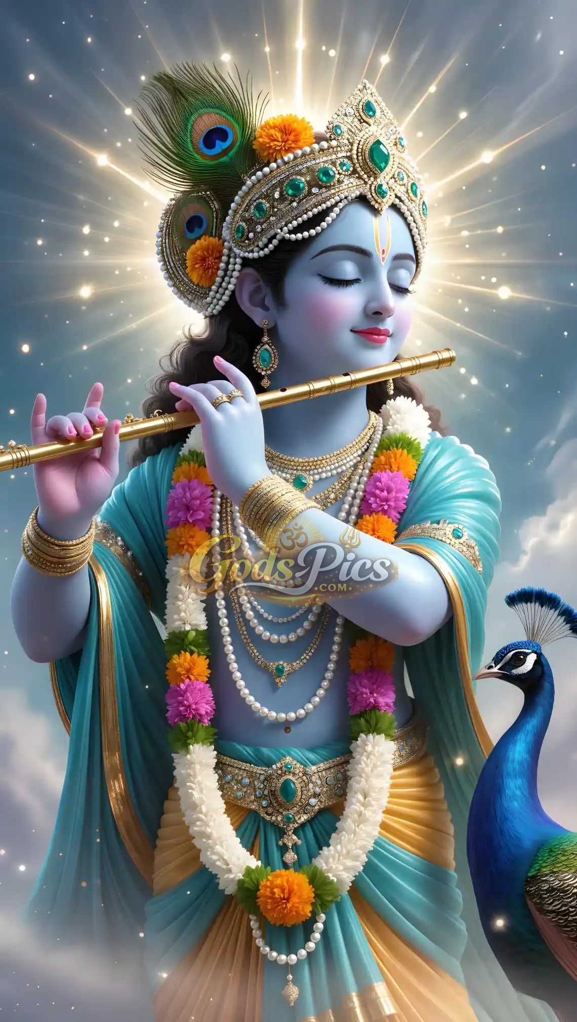 Subject: Divine Lord Krishna Playing Flute Digital Beautiful Art By Gods Picss