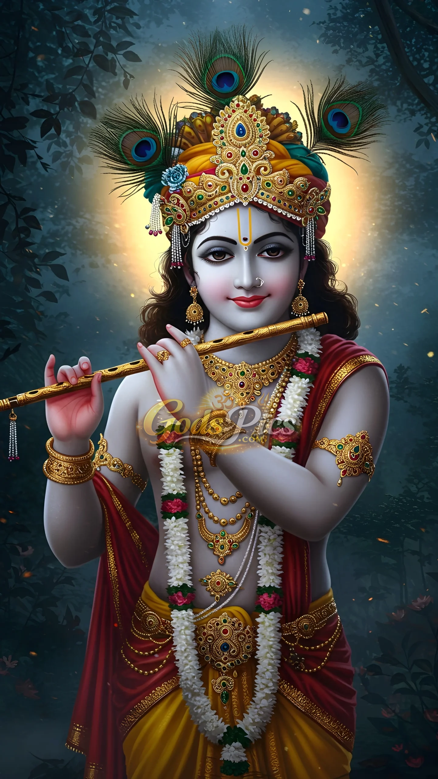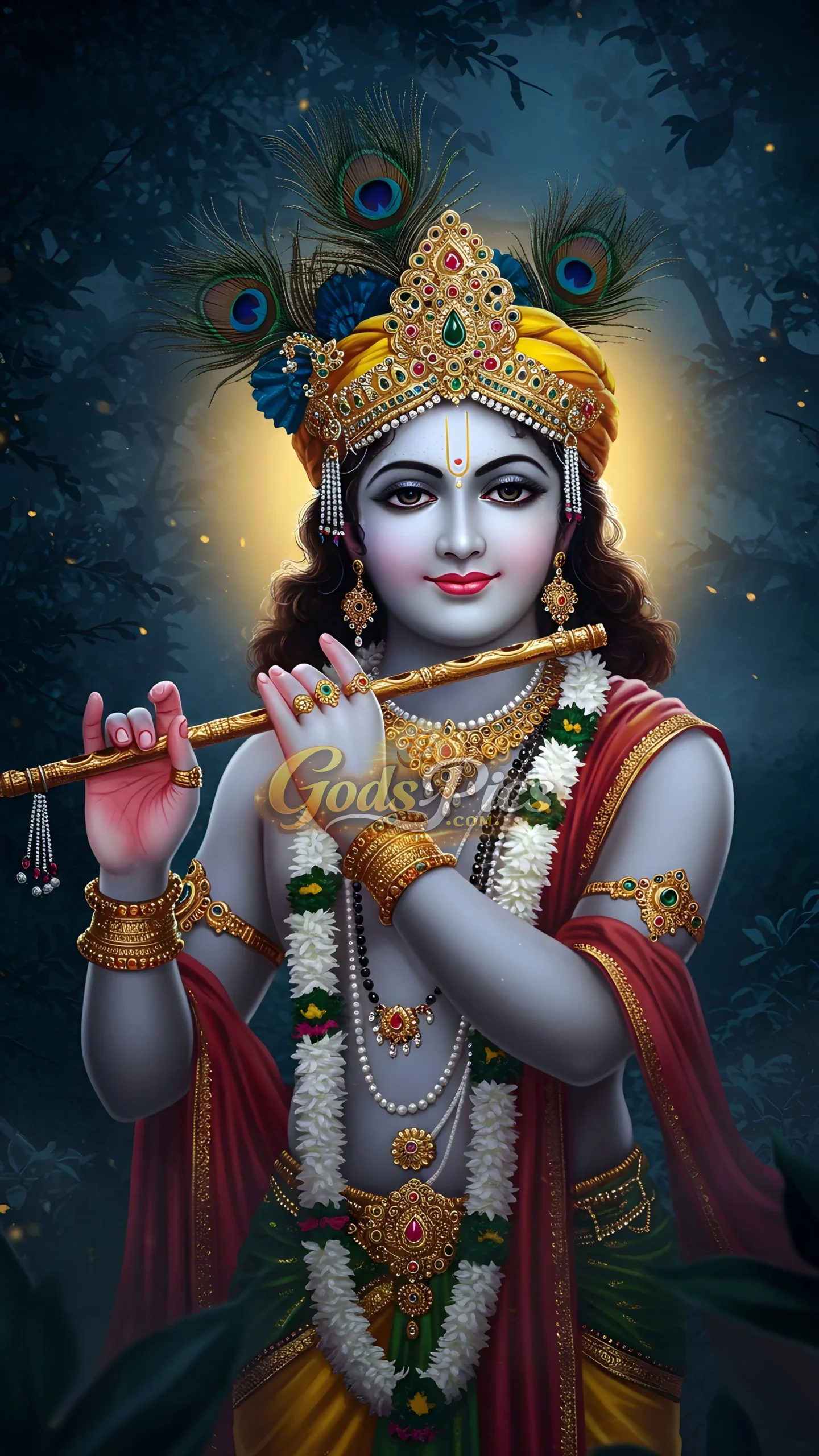 🕉️ Lord Krishna Playing Flute – Premium Spiritual Digital Artwork