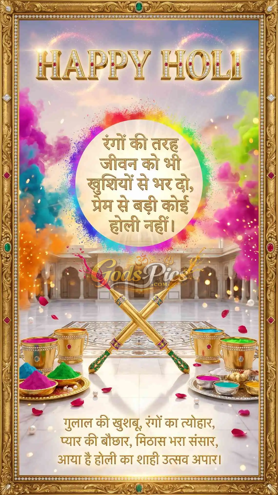 Golden stylish “होली” text aur bright gradient background is design ko premium look deta hai. Yeh poster social media post, WhatsApp greeting, print poster, banner ya shop decoration ke liye perfect hai.