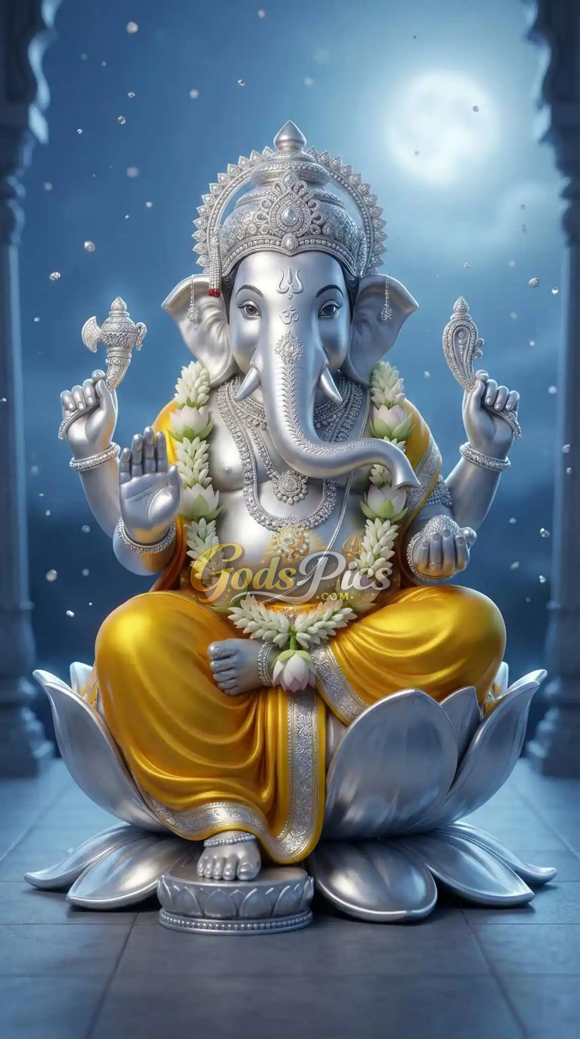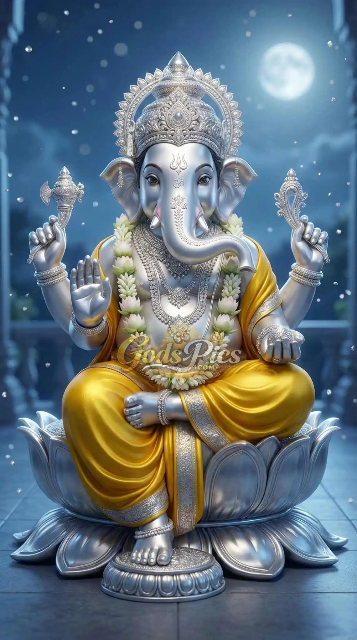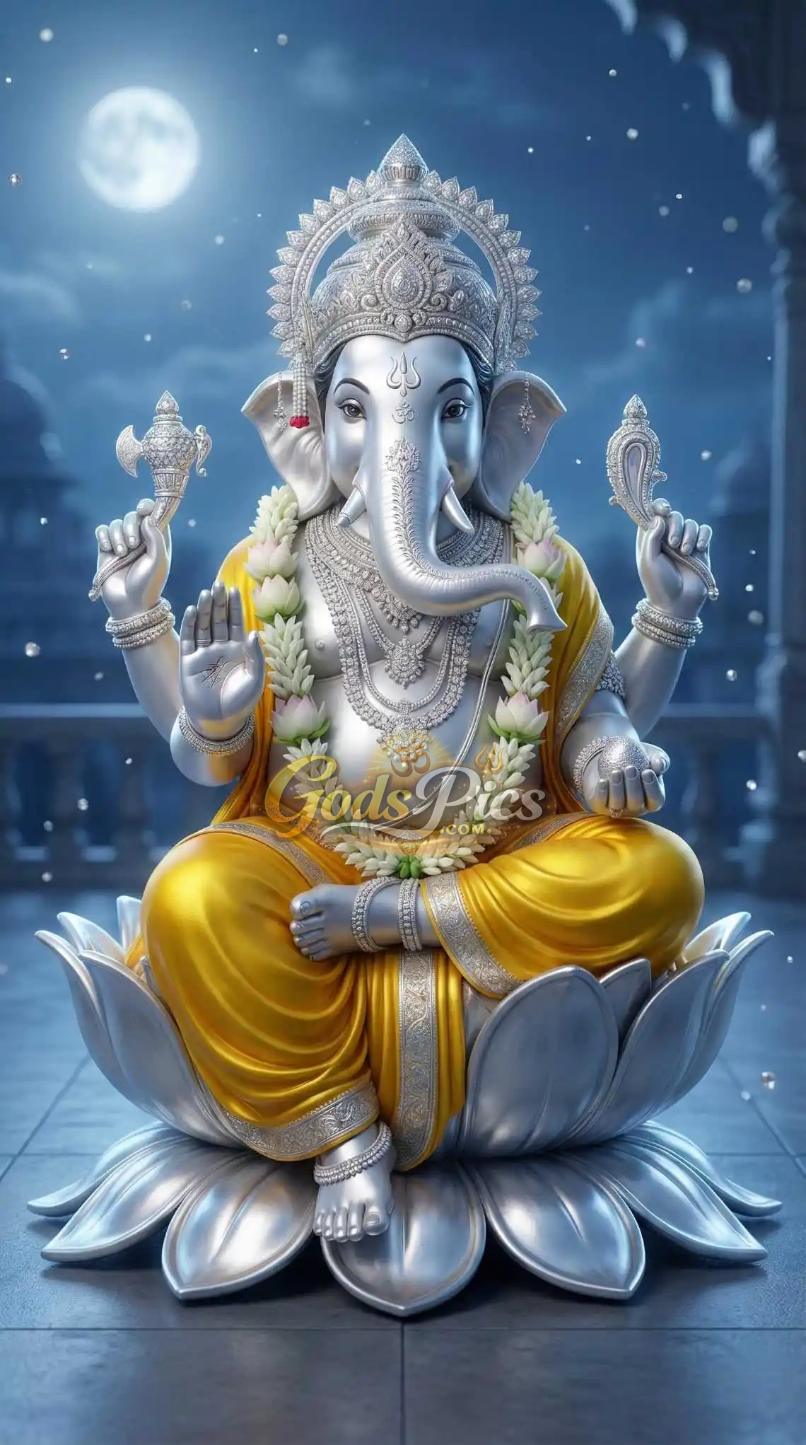 This is a high-quality digital artwork of Lord Ganesha, designed with a beautiful silver and white theme that reflects peace, purity, and divine energy.
