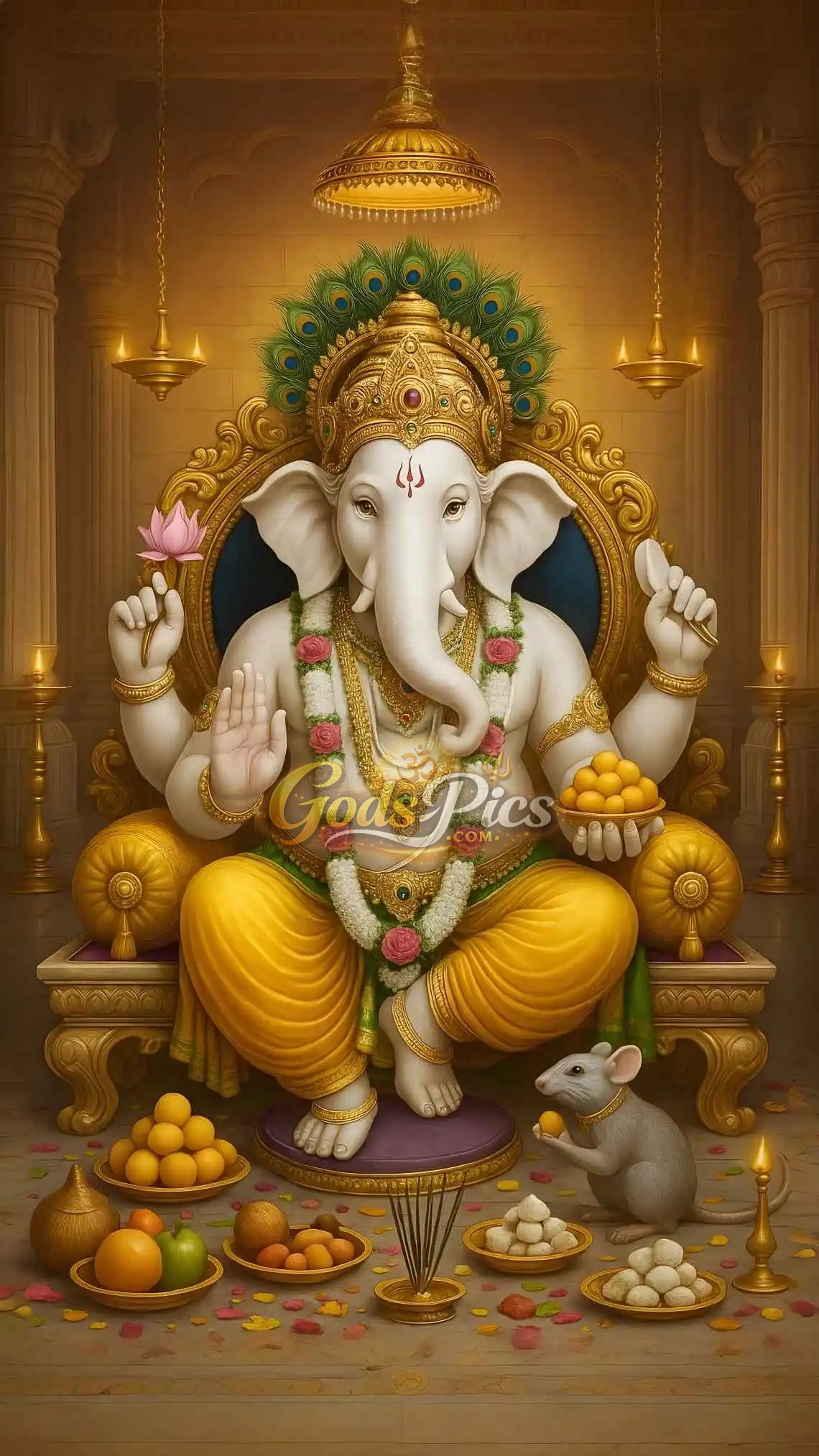 This is a high-quality digital artwork of Lord Ganesha, designed with a beautiful silver and white theme that reflects peace, purity, and divine energy.