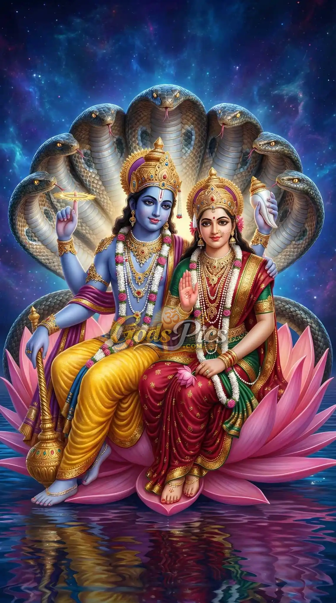 Subject: Lord Vishnu & Lakshmi on Sheshnag – Cosmic Ocean (2 Images)