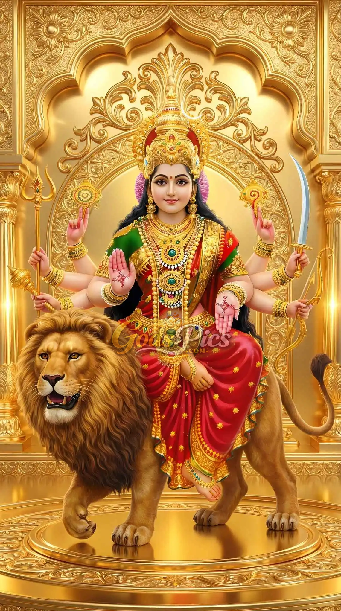 Subject: Maa Durga with Lion Beautiful HD Wallpaper