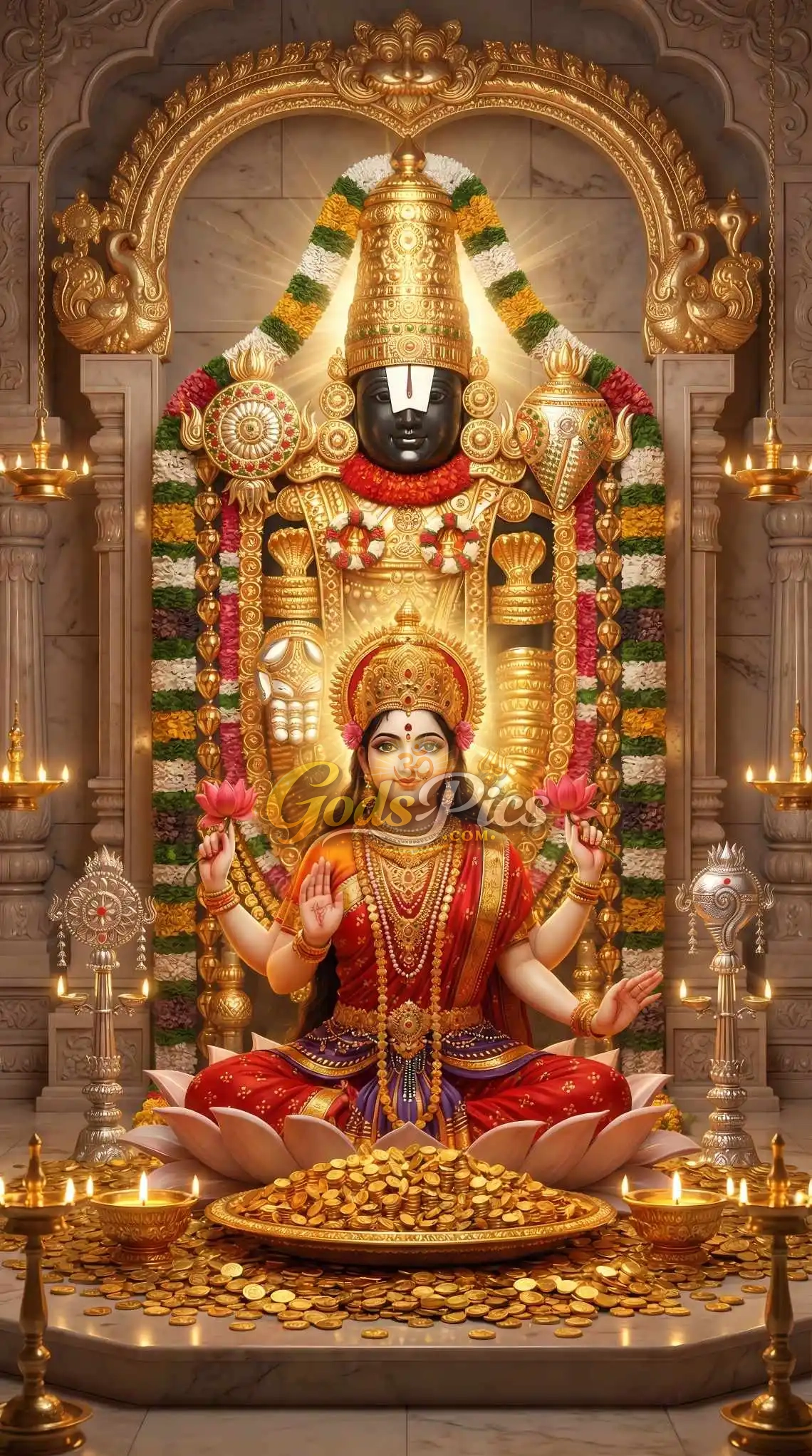 • Subject: Maa Lakshmi with Tirupati Balaji HD Divine Wallpaper (2 Images)