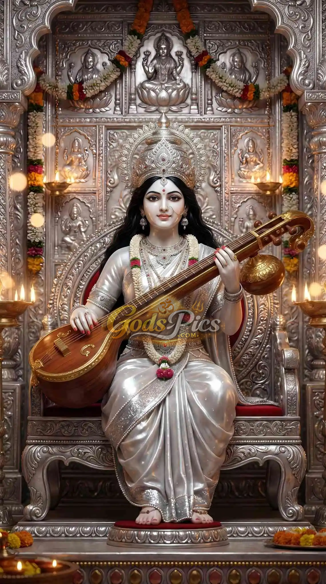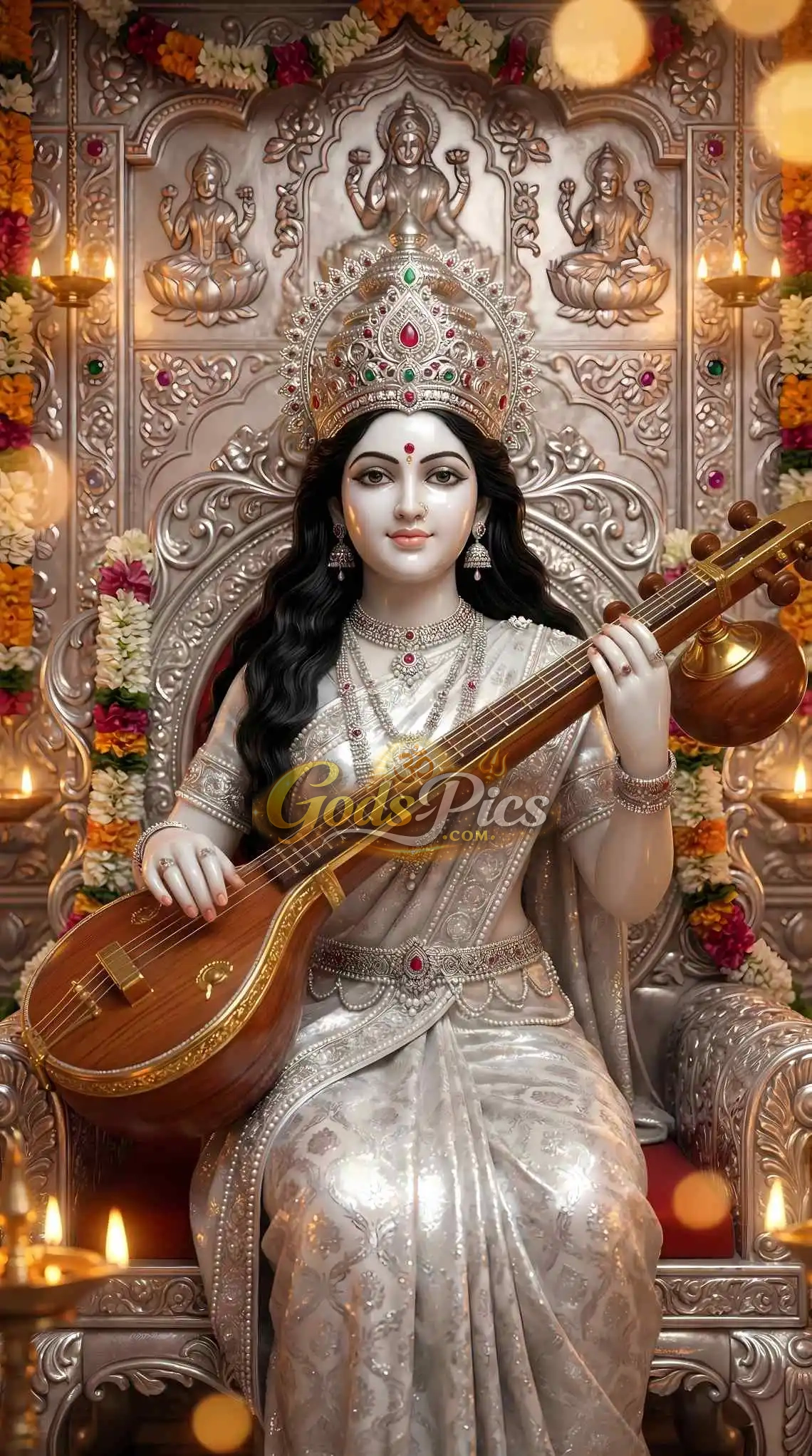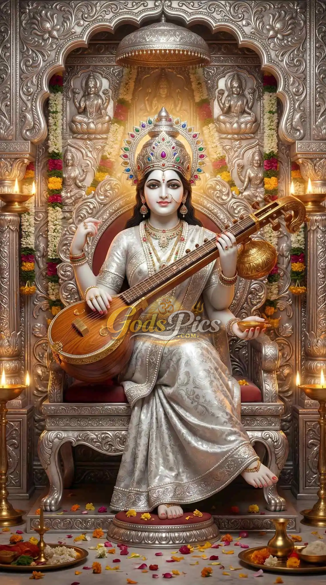 Subject: Saraswati Maa – Premium Spiritual Digital Art (Set of 4 Images)