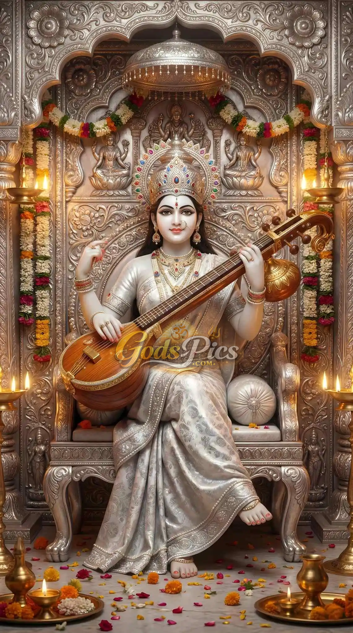• Subject: Saraswati Maa – Premium Spiritual Digital Art (Set of 4 Images)