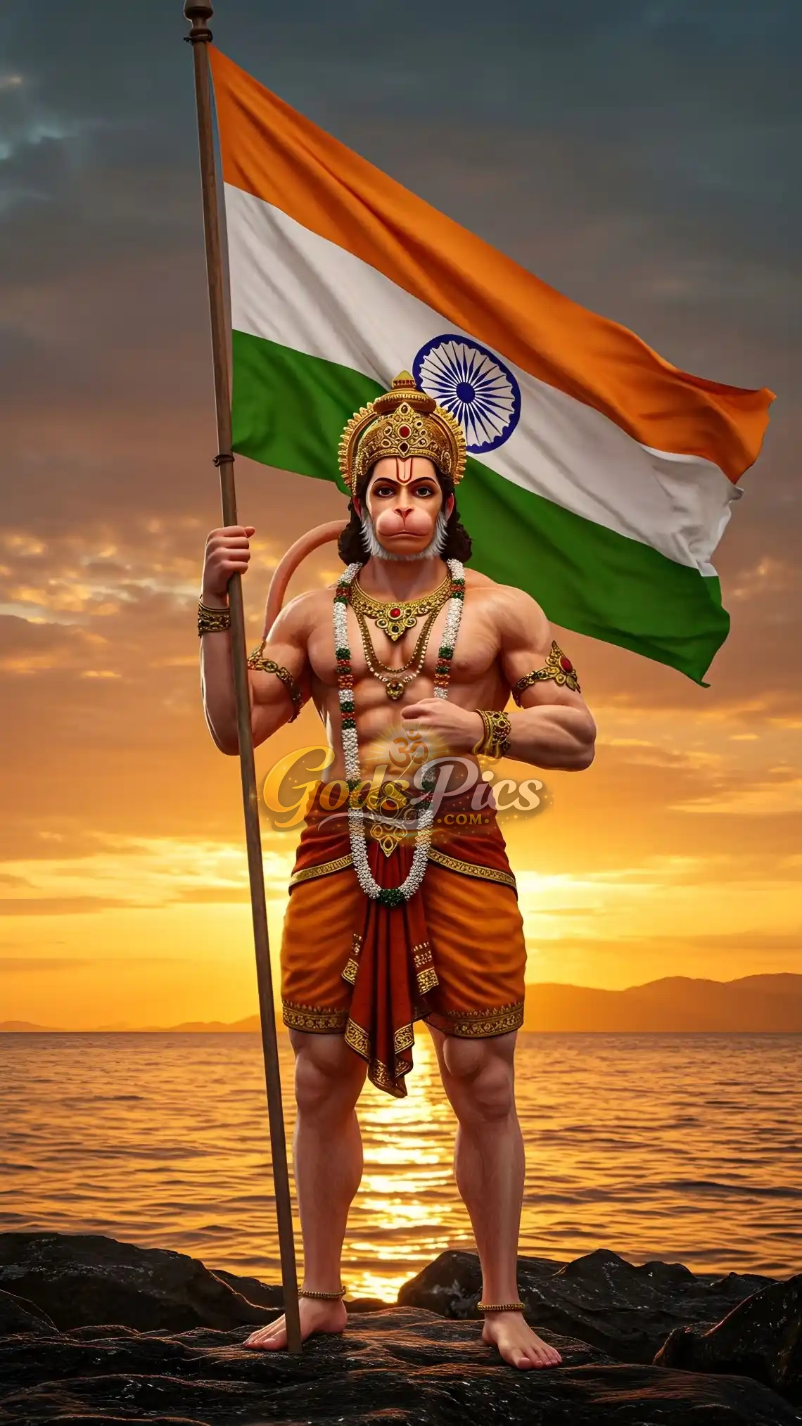 Subject: Veer Lord Hanuman Holding Indian National Flag – Patriotic Spiritual Digital Art